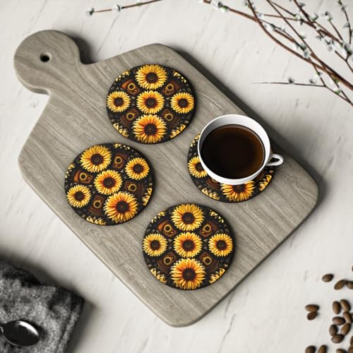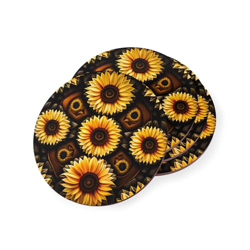 Generic - قاعدة أكواب بنمط دوار الشمس واقعي، طقم من 4 قواعد أكواب من المطاط مقاومة للحرارة ومتينة بنقشة الزهور، طقم من 4 قطع