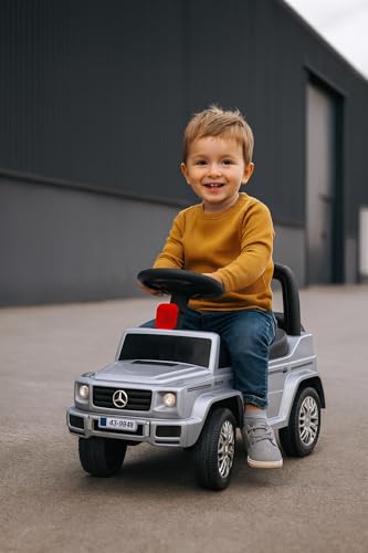 Generic - سيارة ركوب للأطفال، ، بتصميم مرسيدس، مع موسيقى وتخزين مخفي، للأعمار من سنة إلى 7 سنوات (رمادي)