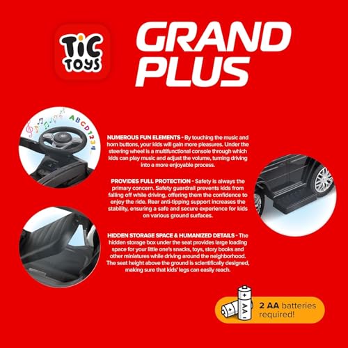 - ميزات ترفيهية متعددة: مزودة بأزرار موسيقى وبوق ولوحة تحكم متعددة الوظائف تحت عجلة القيادة تتيح للأطفال تشغيل الموسيقى وضبط مستوى الصوت لتجربة قيادة ممتعة