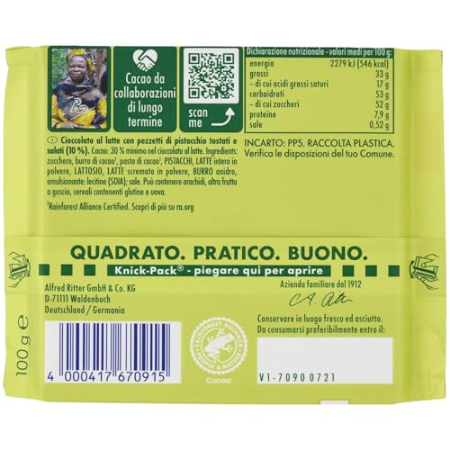 Ritter Sport - ريتر سبورت لوح شوكولاتة بالفستق، 100 جرام