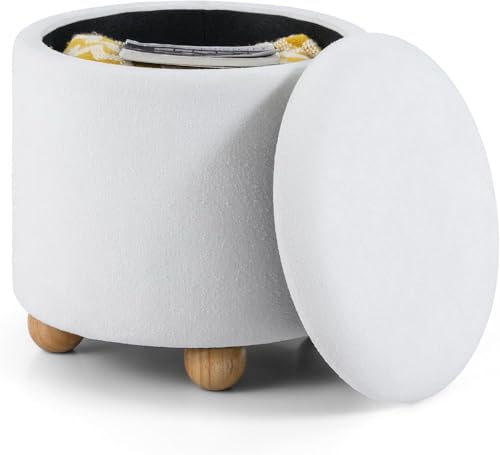 Generic - وسادة تخزين مستديرة، 44.5 × 44.5 سم، قماش شانيل وغطاء قابل للإزالة، أرجل خشبية مطاطية، سعة تحميل 150 كجم، أبيض