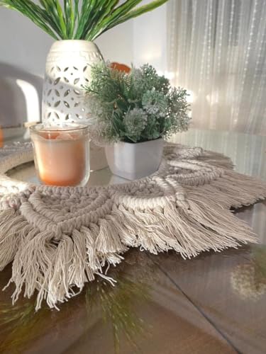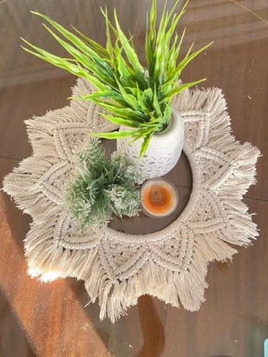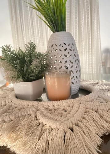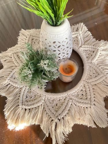 Generic - مفرش طاولة دائري بفن المكرمية صناعة يدوية من خيوط مكرامية للمائدة والمزهرية والشموع القطر الداخلي 25 سم والقطر الخارجي 50 سم