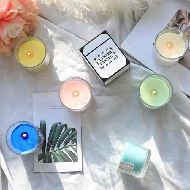 Generic - شمعة معطرة في كوب زجاج أنيق برائحة فواحة تدوم طويلًا للاسترخاء وتزيين المنزل مع تصميم عصري مناسب لغرف المعيشة وغرف النوم والمكاتب