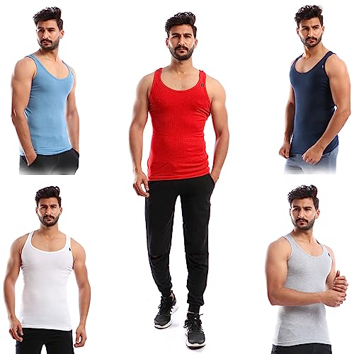 Cottonil - مجموعة من (5) تي شيرتات داخلية قطن بدون أكمام - للرجال