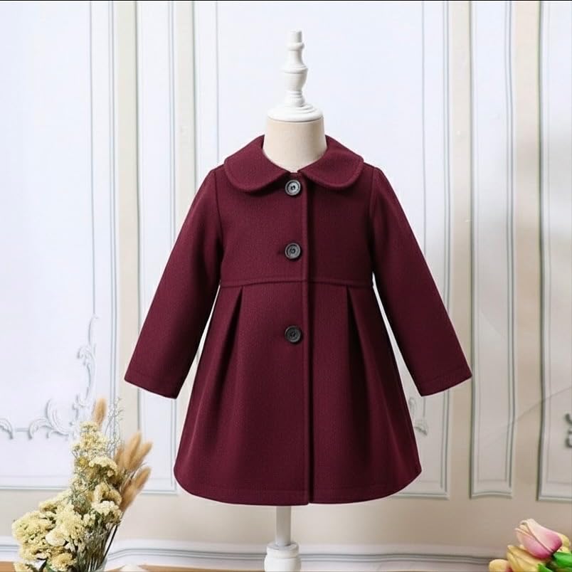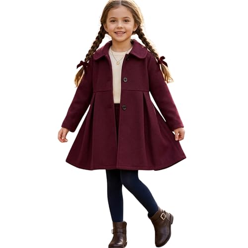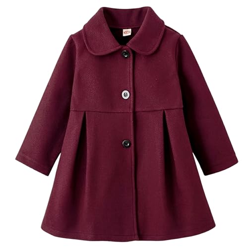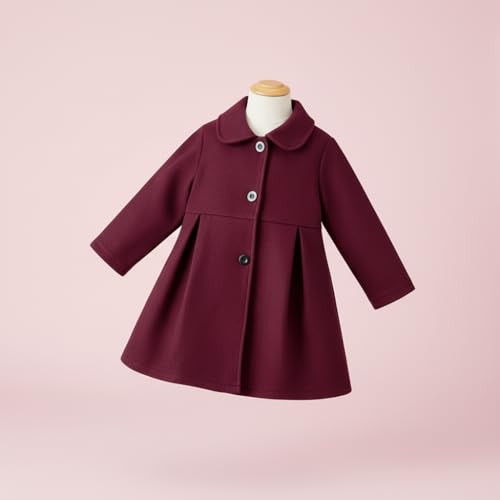 Generic - معطف شي ان شتوي للبنات بياقة بيتر بان مع أزرار، لون نبيتي، 7-8 سنوات