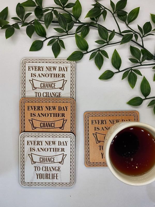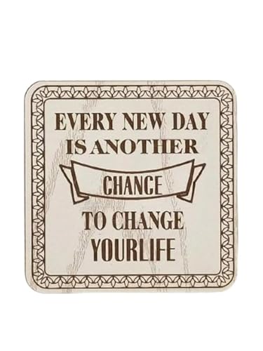 SIGN & DESINE - قاعدة اكواب/كوستر خشب مربعة، محفورة بعبارات ملهمة، سُمك 6 مللى وابعاد 9.5 × 0.6 سم، لون بيج