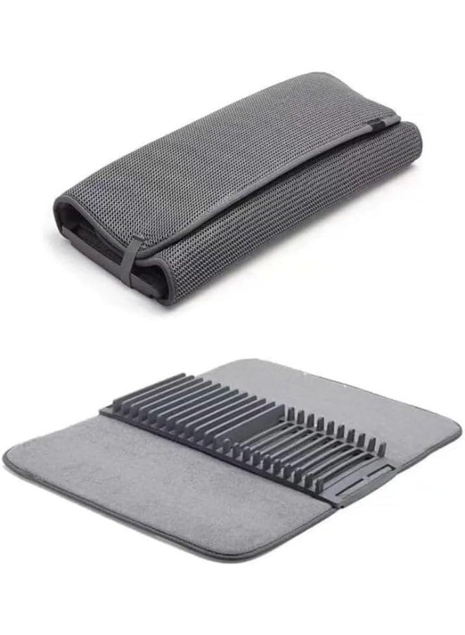generic - بساط تجفيف الاطباق من السيليكون مع طبق وحامل ادوات تناول الطعام، بساط مبطن من المايكروفايبر سريع الجفاف