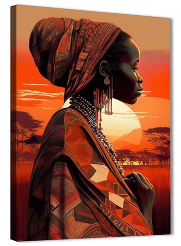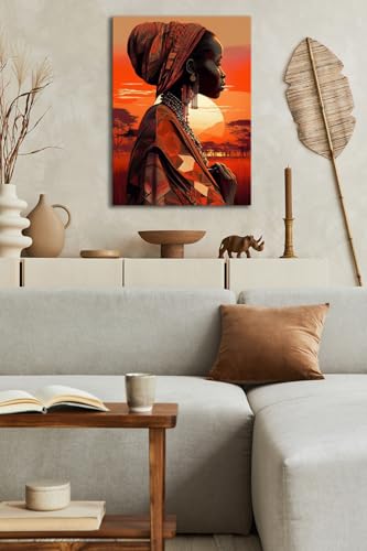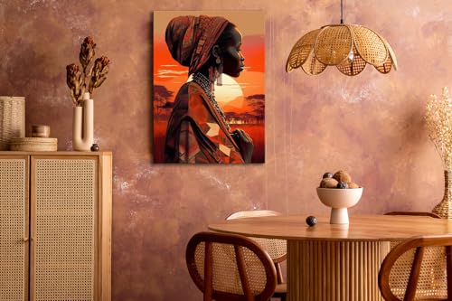 Skills - تابلوهات من القماش بتصميم امرأة ذات بشرة سمراء داكنة في مشهد أفريقي عند غروب الشمس - تعلق على الحائط لتزيين غرفة المعيشة وغرفة النوم وديكورات المكتب وغيرها - مقاس (30 سم × 40 سم ) من سكيلز
