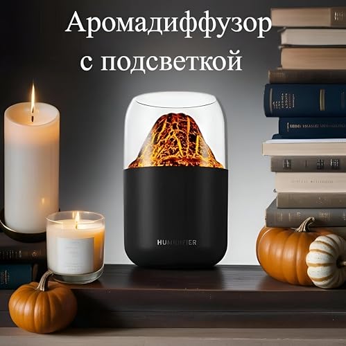 Generic - مرطب هواء صغير على شكل لهب - جهاز مدمج 300 ملليلتر يجمع بين العلاج العطري وتوازن الرطوبة، يوفر رذاذًا لطيفًا وضوءًا دافئًا لتجديد جودة الهواء في غرف النوم أو غرف الفنادق، أسود