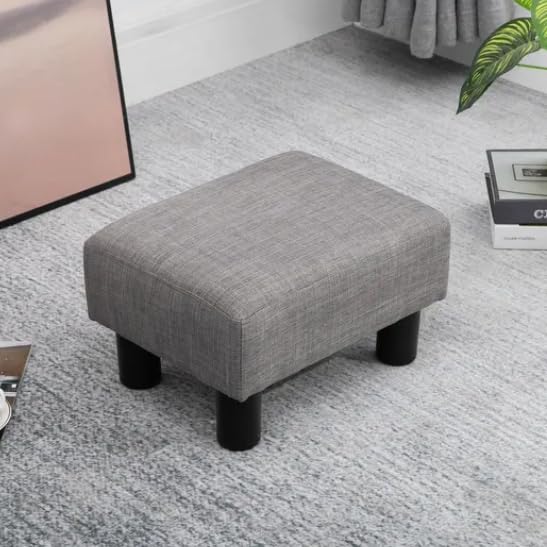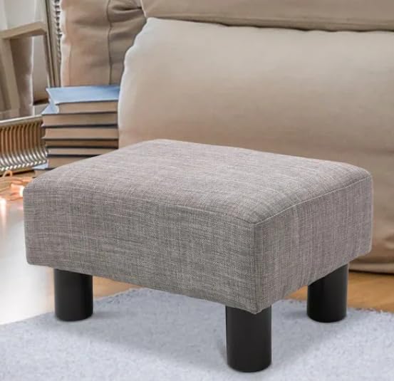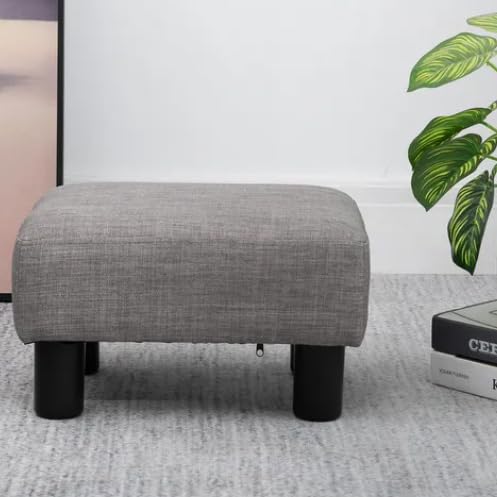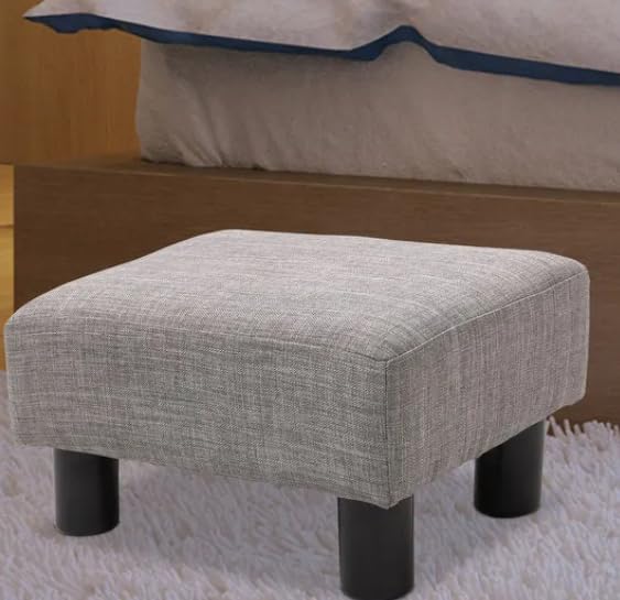 Generic - مسند قدم مربع صغير، مسند قدم مبطن من قماش الكتان مع ارجل بلاستيكية قوية، مقعد درج عصري، رمادي