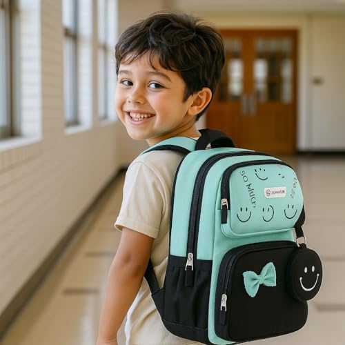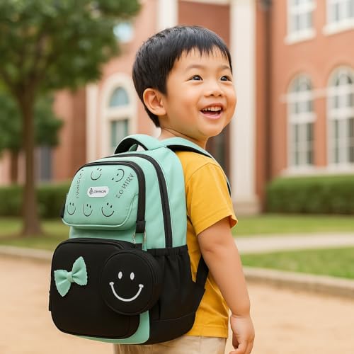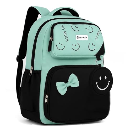 SOMUCH - شنطة ظهر مدرسية للبنات من سوموش - بتصميم وجوه مبتسمة لطيفة وفيونكة - مقاومة للماء - سعة كبيرة وخفيفة الوزن - مناسبة للمدرسة والسفر