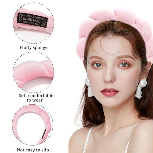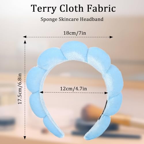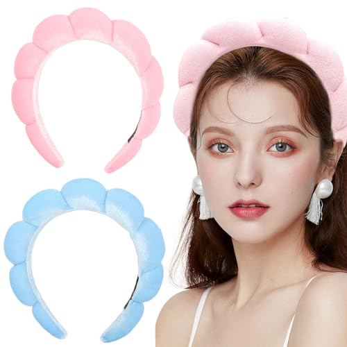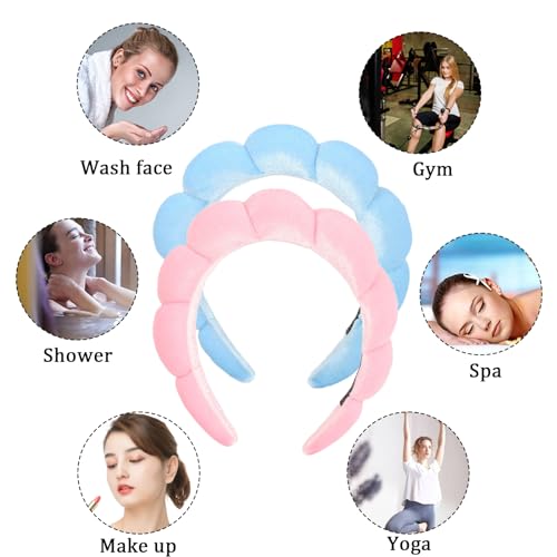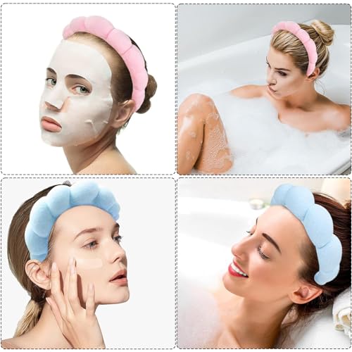 DALOMGZL - شريط راس سبا للنساء، شريط راس اسفنجي للعناية بالبشرة من قماش تيري ناعم، اكسسوارات شعر منتفخة لغسل الوجه وازالة المكياج والاستحمام والعناية بالبشرة والقناع، قطعتين (زهري وازرق)