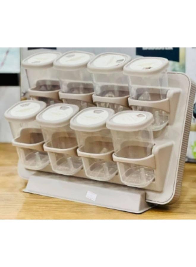 Generic - طقم توابل مع حامل، 8 قطع، سعة البرطمان: 350 مل