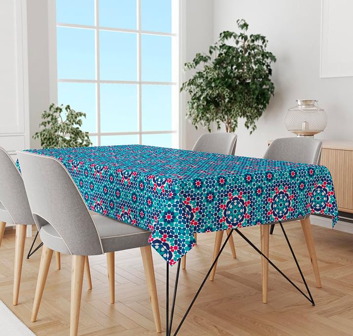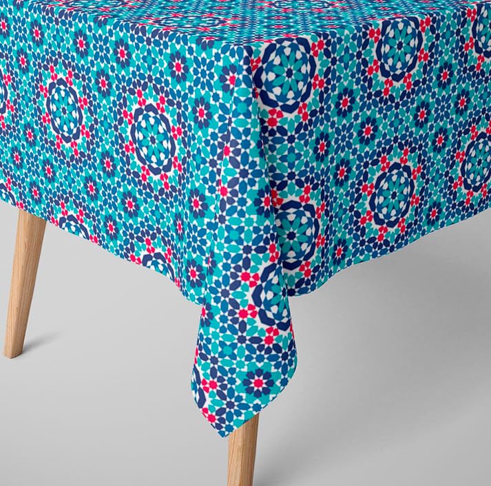 Generic - مفرش طاولة مربع متدرج بلون ازرق بنمط فسيفساء تركواز وزهري، 135×240 سم