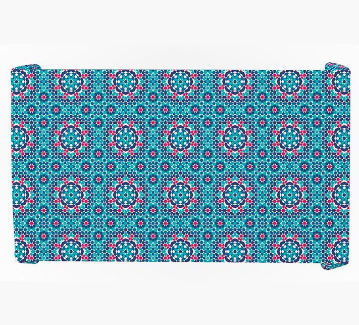 - تصميم فسيفساء نابض بالحياة: يتميز بنمط هندسي تركواز وزهري لافت للنظر مستوحى من فن الخيامية التقليدي، مما يضيف لمسة زخرفية جريئة إلى مساحة الطعام الخاصة بك