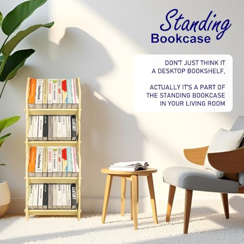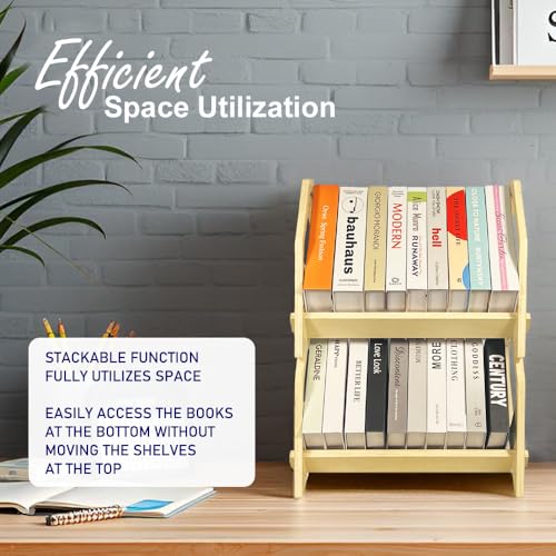 Stoneandegg - رف كتب لسطح المكتب من ستونيانديج، منظم كتب قابل للتكديس، رف تخزين صغير للاقراص المضغوطة والمجلات والملفات، خزانة كتب صغيرة محمولة للدراسة، غرفة المعيشة، غرفة الاطفال، بدون براغي