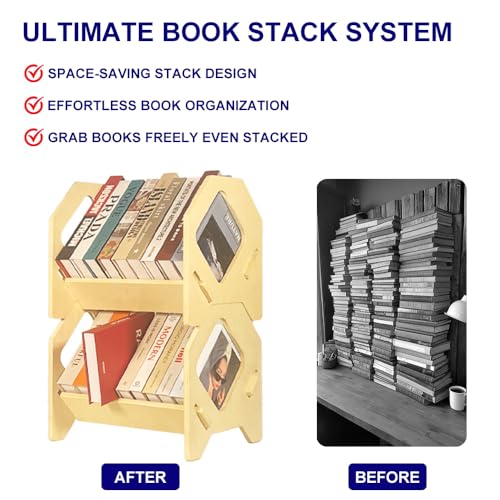- ميزة توفير المساحة - قابلة للتكديس تجعلها الحل الأمثل لتوفير المساحة، ويمكن تكديسها لأعلى أو وضعها أفقيًا. يسمح لك التصميم على شكل حرف V بالتحقق من عنوان الكتاب بصريًا، ويسهل إخراج الكتاب حتى إذا كانت أرفف الكتب مكدسة معًا.