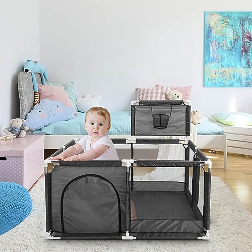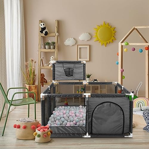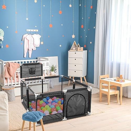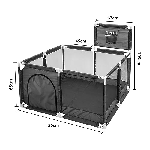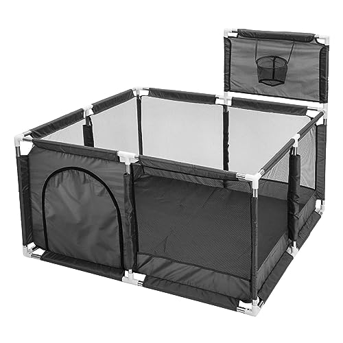 Supernic - ساحة لعب كبيرة جدا للأطفال بتصميم قفص لعب كبير محمول آمن لسلامة الأطفال مع حلقة كرة سلة وسياج للأطفال الصغار مع شبكة جيدة التهوية للأولاد والبنات والرضع من سوبرنيك، لون أسود