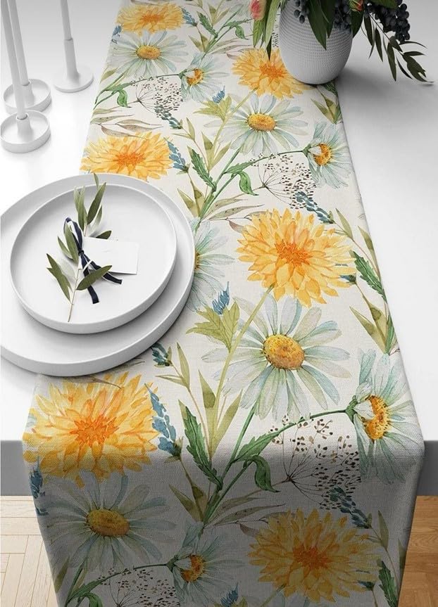 Generic - مفرش طاولة بتصميم زهرة دوار الشمس على خلفية ملونة بطباعة رقمية، مقاس 2.00 م × 40 سم، مفرش ترابيزة سفرة طويل لديكور المنزل
