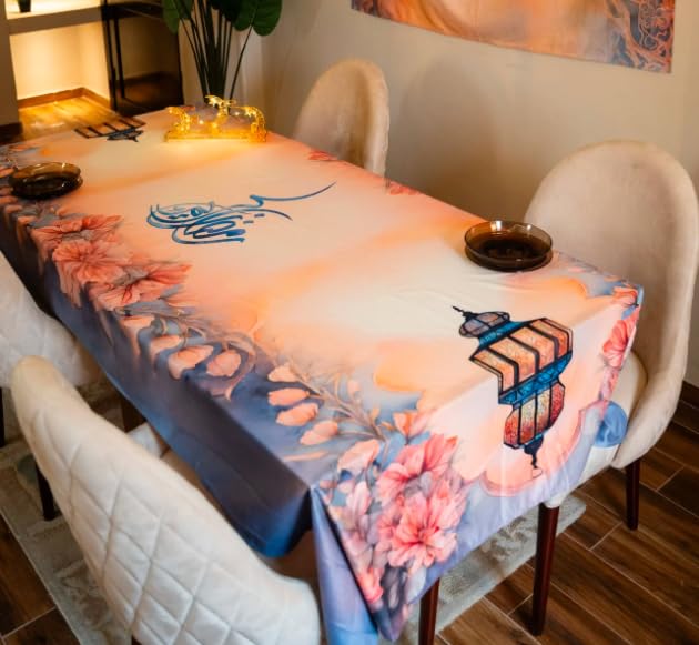 - تصميم أنيق: يتميز بعمل فني زهري جميل مع خط عربي على قماش مخملي ناعم يضيف لمسة راقية إلى مساحة تناول الطعام الخاصة بك