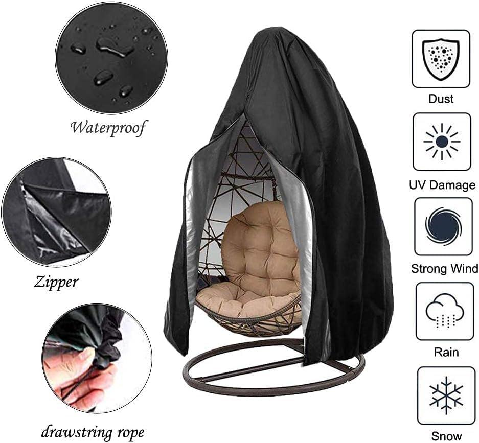 JOEJNCED - غطاء كرسي معلق على شكل بيضة الشرفة، غطاء كرسي معلق للحديقة بسحاب ومقاوم للماء، غطاء كرسي بيضة متارجح مقاوم للرياح 210D للاماكن الخارجية (190 × 110 سم)