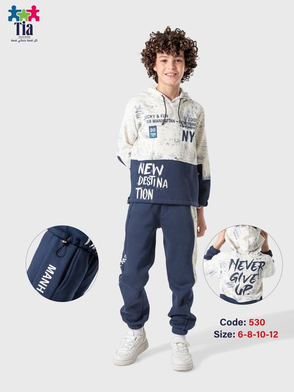 Tia KIDS WEAR - طقم قطن للاطفال بعبارة "New Destination" للاولاد من تيا كيدز