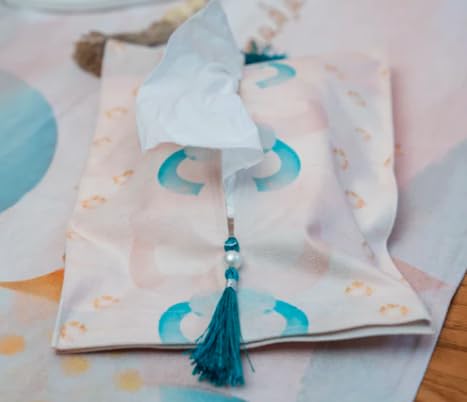 - تفاصيل الشرابة المزخرفة: تتضمن زخرفة شرابة جذابة تعزز المظهر الجمالي وتضيف لمسة نهائية أنيقة إلى غطاء المناديل