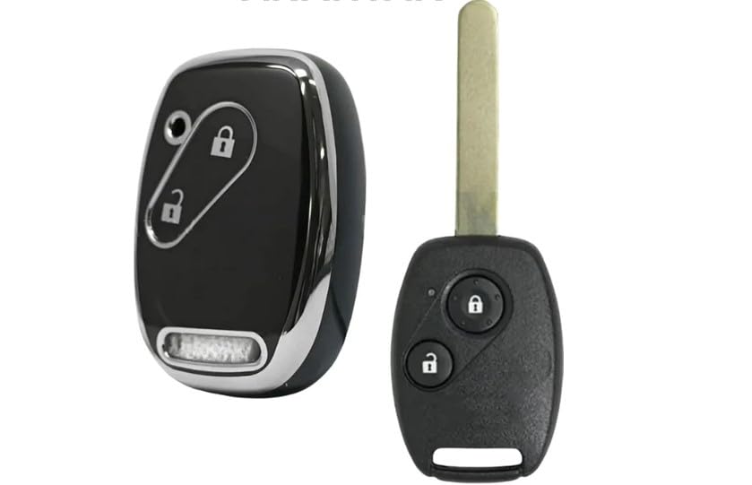 Generic - غطاء حماية لمفتاح السيارة من البولي يوريثين الحراري متوافق مع هوندا سيفيك بزرين (أسود X فضى)