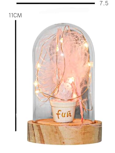 Generic - مزهرية على شكل صبار بينك مع سلسلة اضواء خيالية في قبة لعيد الحب وعيد الام وعيد الميلاد والذكرى السنوية والكريسماس - مصباح LED مقاس 11 × 7.5 سم