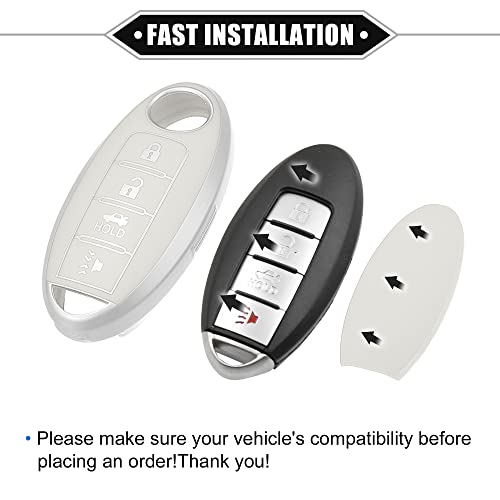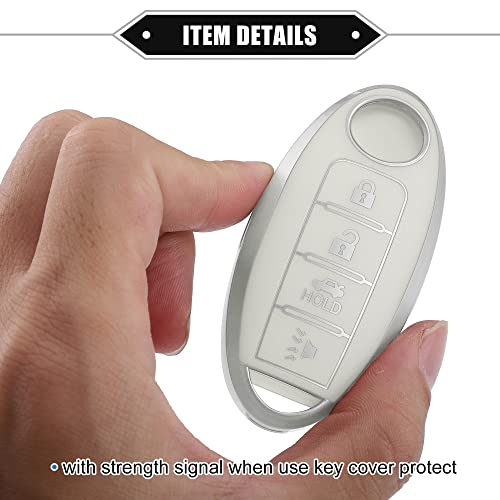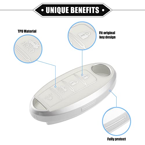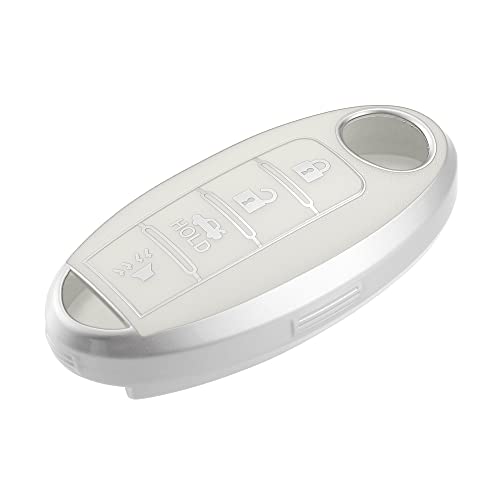 VekAuto - غطاء حماية لمفتاح فوب بـ4 ازرار من فيك اوتو متوافق مع نيسان التيما 2007-2020، غطاء حماية ذكي من البولي يوريثين الحراري المرن بلون ابيض لمفتاح الدخول بدون مفتاح
