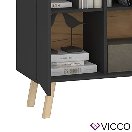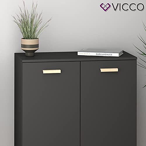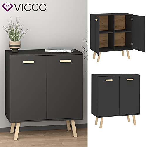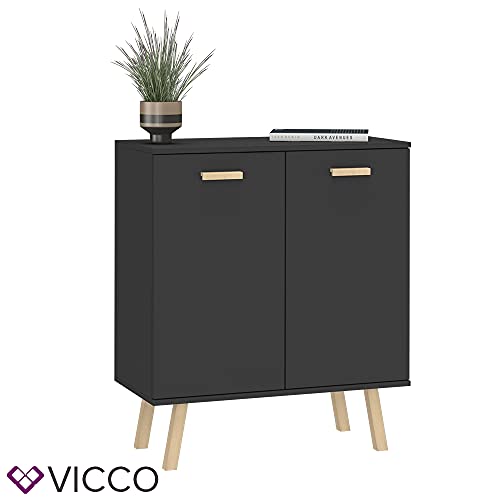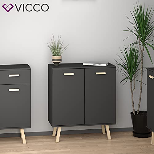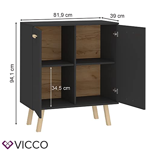 Vicco - دولاب جانبي بأبواب من فيكو هانز، رصاصي وخشبي، مقاس 81.9 × 94.1 سم