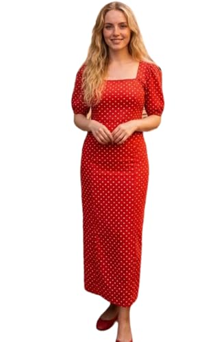 Generic - فستان متوسط الطول منقط احمر فينتاج - قماش زبدة ناعم (40 × 120 سم)