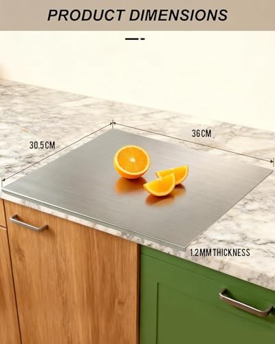 VOLTURI - لوح تقطيع من الستانلس ستيل 304 من فولتوري (36 × 30.5 سم)، مطور الى مستوى النظافة الجراحية، امن غذائيا، غير مسامي، مقاوم للصدا، مقاوم للحرارة، لوح تقطيع شديد التحمل مصمم للطبخ الهندي اليومي