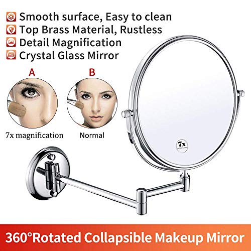 JYCCH - مرايا مكياج مثبتة على الحائط، مراة مكبرة متينة وقابلة للتعديل للحلاقة والمكياج والحمام (7 × 6 انش)