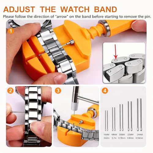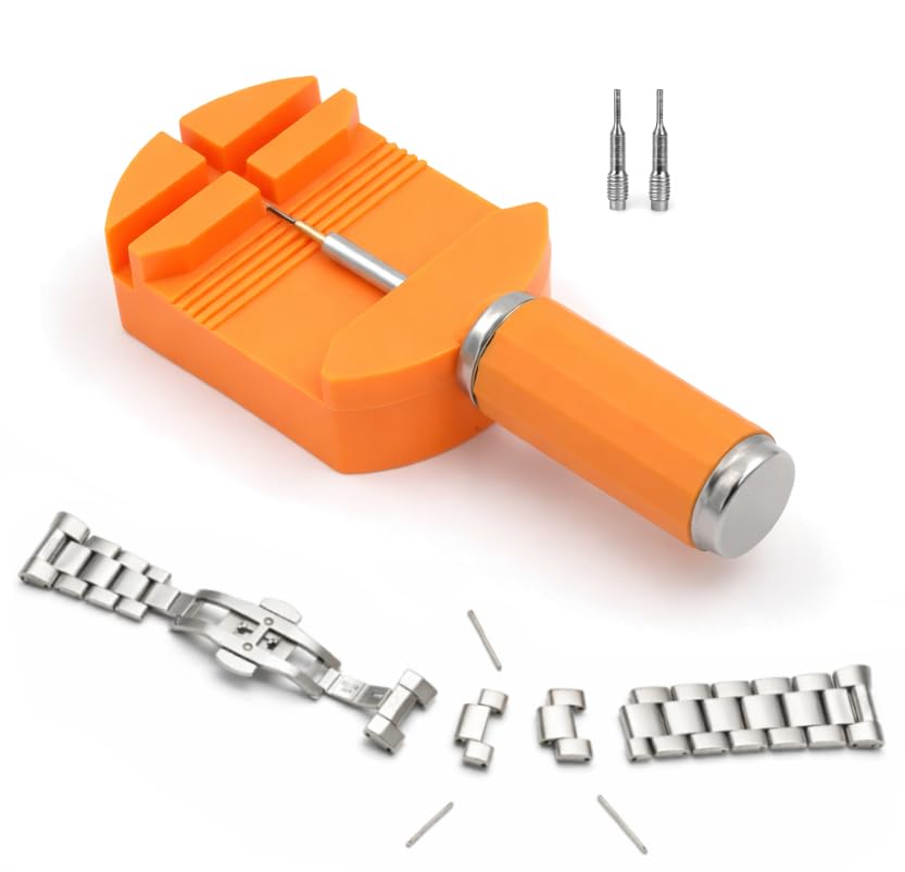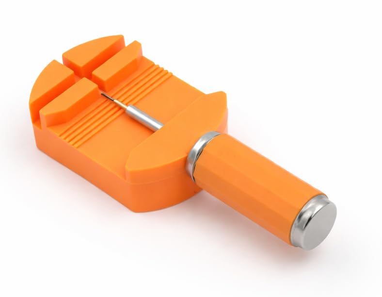 Generic - أداة متخصصه لتعديل طول سوار الساعة، فك وربط حلقات اسورة الساعات المعدنية بسهولة وأمان - من البلاستيك مع رأس وحواف معدنيه - تأتي مع 2 إبرة اضافية