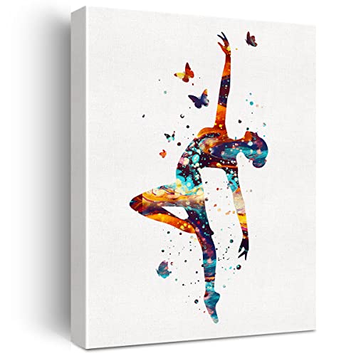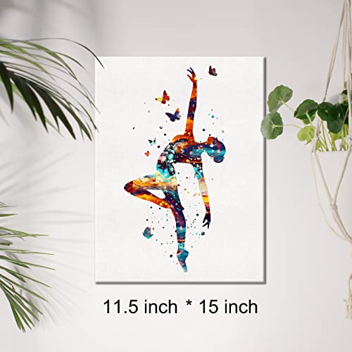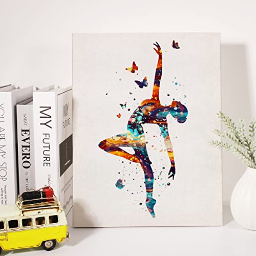 JerLoe - لوحة فنية جدارية من القماش بتصميم راقصة باليه كلاسيكية بالوان مائية مطبوعة على قماش كتاني لفتاة ديكور حائط مؤطر هدايا 12×15 بوصة أبيض