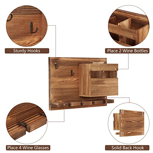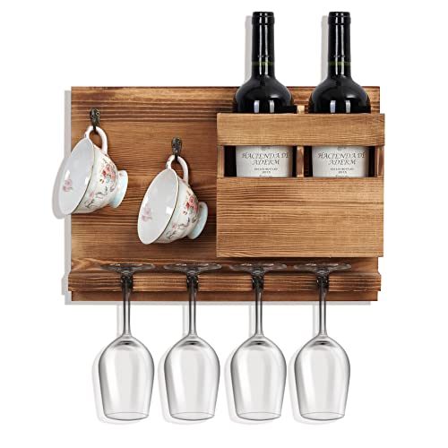 - حامل حائط متعدد الوظائف - يمكن لرف النبيذ الخاص بنا مع رف زجاجي تخزين زجاجتي نبيذ وتعليق 4 أكواب نبيذ وكوبين قهوة، مما يحافظ على كل شيء في متناول محبي النبيذ.