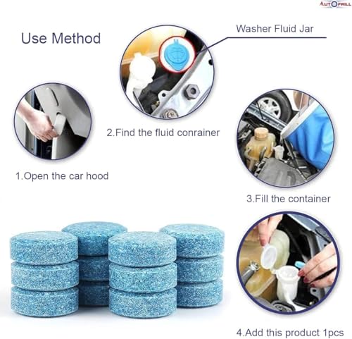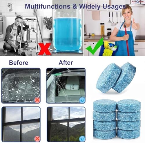 - تركيبة مركزة: يذوب كل قرص فوار في الماء لإنشاء 4 لترات من محلول تنظيف الزجاج الأمامي القوي، مما يوفر قيمة وراحة استثنائية
