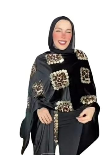 Generic - عباية مزخرفة للنساء، اسود مع رقع ترتر بطبعة جلد الفهد، فستان اسلامي محتشم، كارديكان، ليالي رمضان، مقاس واحد