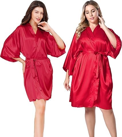 Generic - روب لانجري ساتان قصير باكمام واسعة للنساء باللون الاحمر