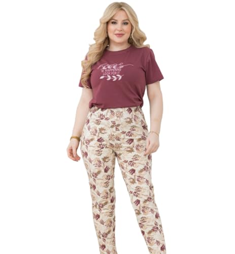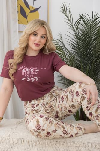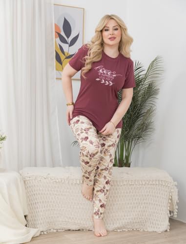 Generic - بيجامة حريمي من القطن، تيشيرت بأكمام قصيرة وبنطلون مريح، خامة ناعمة وخفيفة تمنحك راحة مثالية للنوم والاسترخاء في المنزل طوال اليوم