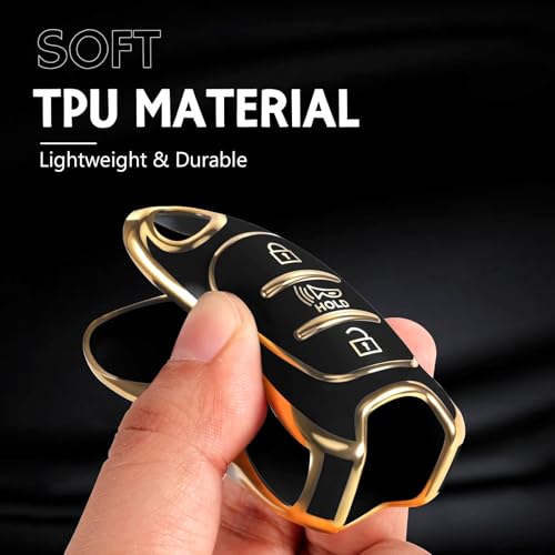 - 🚗جودة عالية🚗: صُنع جراب المفاتيح من البولي يوريثين الحراري الناعم الممتاز والمتين للغاية. يوفر الحماية القصوى لمفتاح سيارتك. كما أن الحواف الذهبية الجديدة المصممة من البولي يوريثين الحراري تغطي جميع أزرار مفتاح السيارة الأصلي، ويبدو اللون الساطع على سطح غطاء مفتاح السيارة مختلفًا وأسهل في العثور عليه وأكثر مرونة وراحة في الاستخدام.