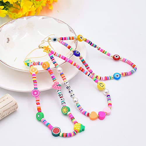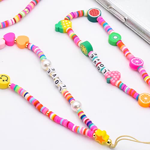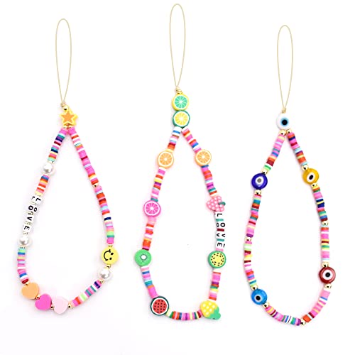 Generic - عليقة خرز للموبايل بتصميم حروف وفواكه من يس بيور، سوار يدوي للنساء (مجموعة من 3 قطع)