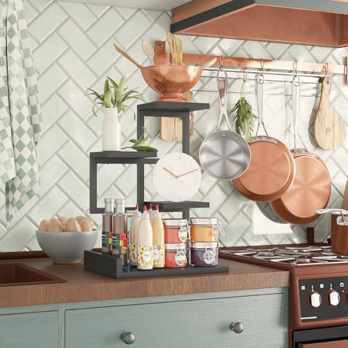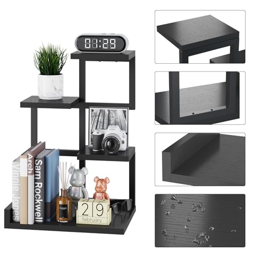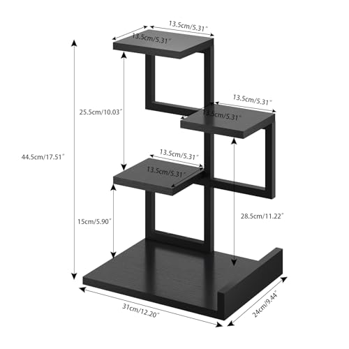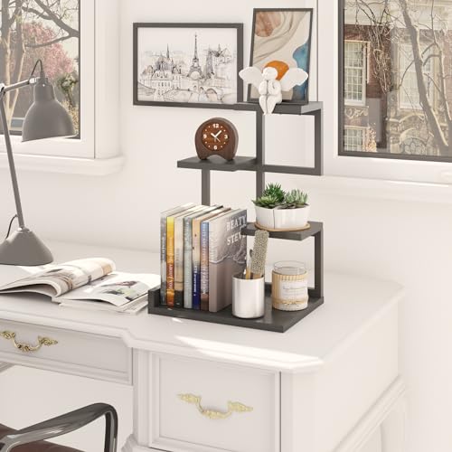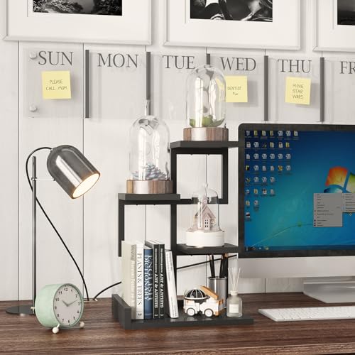 YMYNY - منظم أرفف سطح المكتب UHSR007B من ياميني، رف عرض للتخزين من 4 طبقات، منظم رف مكتب صغير مع إطار معدني للمكتب والكتب والنباتات، 31 × 24 × 44 سم، أسود