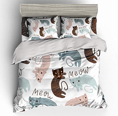 YTBDWOSQ - غطاء لحاف مع 2 كيس وسادة ثلاثي الابعاد بتصميم حيوانات كرتونية بسيطة، طقم سرير مفرد ناعم وسهل العناية من المايكروفايبر مع سحاب للاغلاق، للبالغين والمراهقين + 2 كيس وسادة