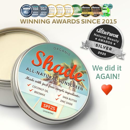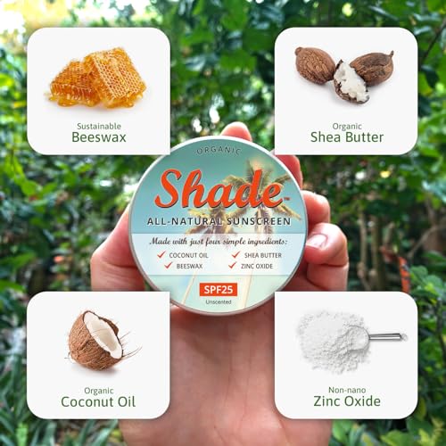Shade All-Natural Sunscreen - 100ml Shade All-Natural Sunscreen SPF25 (Medium size) - Organic Unscented - Only 4 Ingredients - Available in 2 Sizes: 15ml (pocket size) 100ml (medium size)