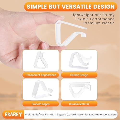 - 【مواد متينة وفاخرة】مشابك مفرش الطاولة هذه مصنوعة من بلاستيك البولي ستايرين عالي الجودة والمقاوم للماء، مما يضمن أنها متينة وتدوم طويلاً. يمتزج التصميم الشفاف للمشابك بسلاسة مع أي مفرش طاولة تقريبًا، مما يجعلها مقاومة وأنيقة.