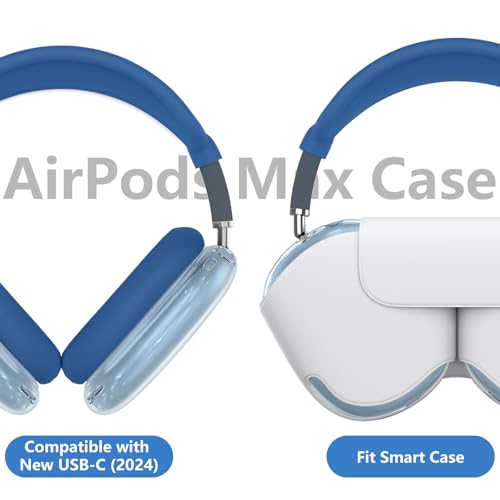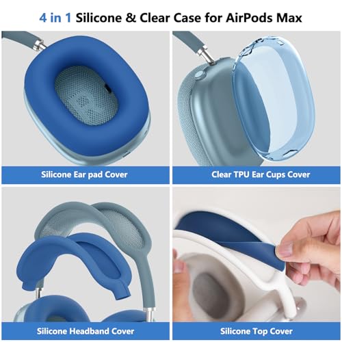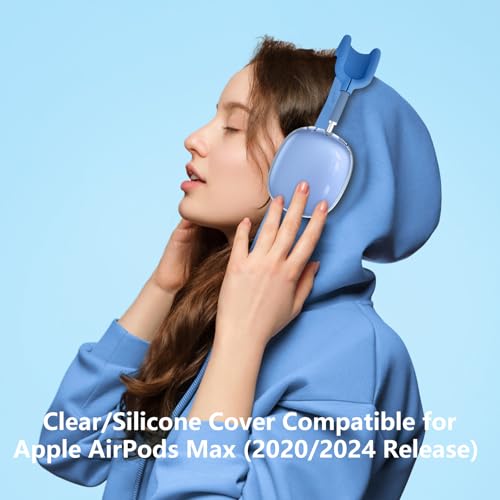 Polislime - [4 in 1] Silicone Case Cover for AirPods Max (2024/2020), Clear TPU Ear Pad Cover/Ear Cups Cover/Headband Cover for AirPods Max, Transparent Silicone Accessories for Apple AirPods Max New USB-C, Blue