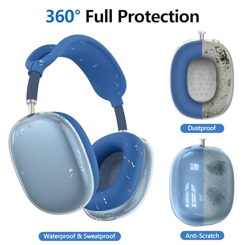 - 【360° Full Protection】These 4 in 1 Transparent TPU & soft silicone covers not only beautify your AirPods Max, they also protect your AirPods Max from drops, dust, dirt, scratches and shock. In addition the cases are waterproof and sweatproof. When you sweat at the gym, they're great protection for your headphones Cushions.