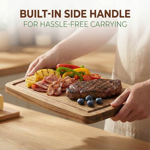 - KNIFE-FRIENDLY: Wooden cutting board is made out of acacia wood, it has strong and durable surface but can also better protect your knife edges from becoming blunt through regular uses